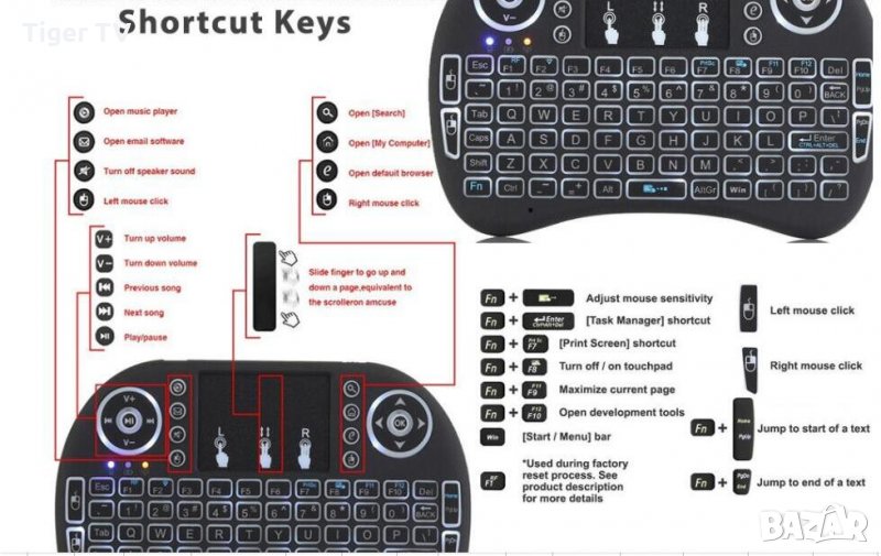 Мини клавиатура подходяща за устройствата като Android TV Box, всички Smart TV, които са свързани с Андроид бокс, изключително удобна най-вече с функцията си за писане, за разлика от използваните дистанционни, които нямат клавиатура и трябва да ползват виртуалната на екрана! Може да се ползва и за компютър, лаптоп, смартфон, таблет, Google TV Box, Xbox, Ps3, IPTV box, Windows box, Apple box, Mac Box, Chromecast, USB TV Dongle и други.