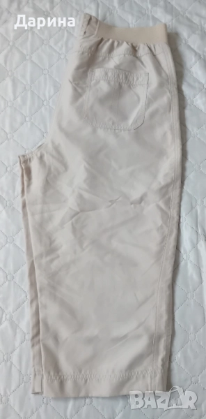 Голям размер 7 / 8 дамски панталон подходящ за бременни . Размер : 50 , цвят бежов . Талия - едностранно : 44 см , Ханш - едностранно : 58 см , Дължина : 82 см , Вътрешна дължина : 54 см , Ширина на крачол едностранно : 34 см . Изпращам с Еконт за сметка на купувача .
