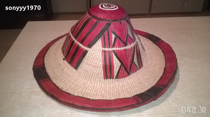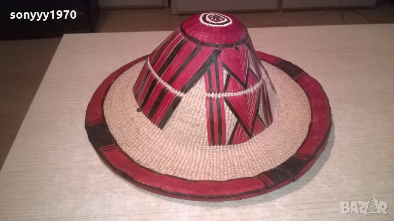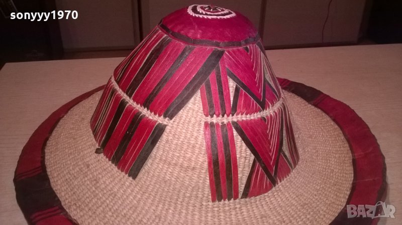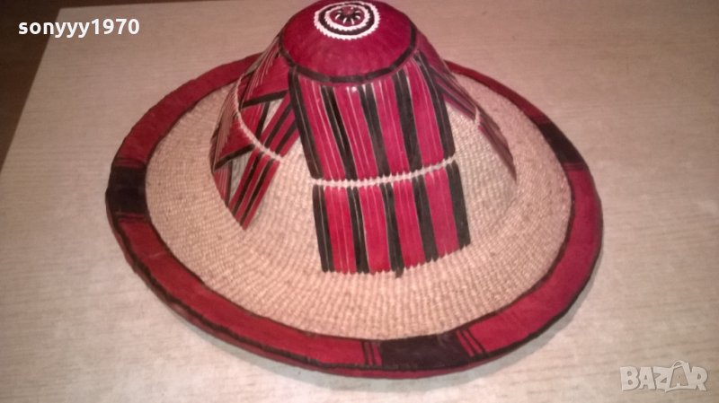 АНТИК-монголска красива автентична шапка-кожа и плетка-38х15см