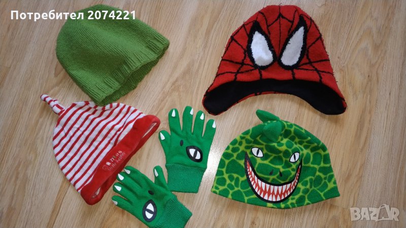 Спайдърмен шапка- 5 лв.; Динозавър с ръкавиците комплект- 10 лв.;
