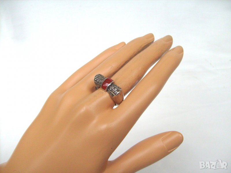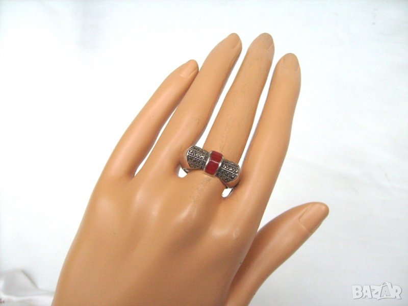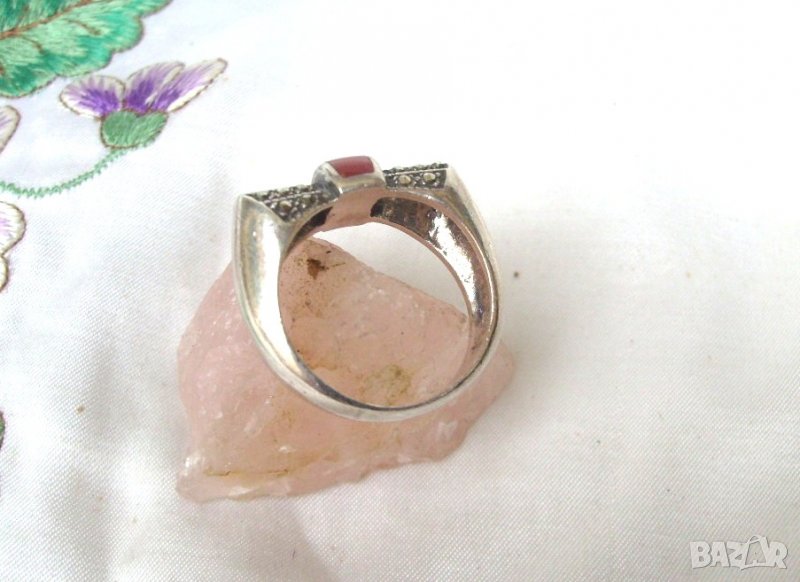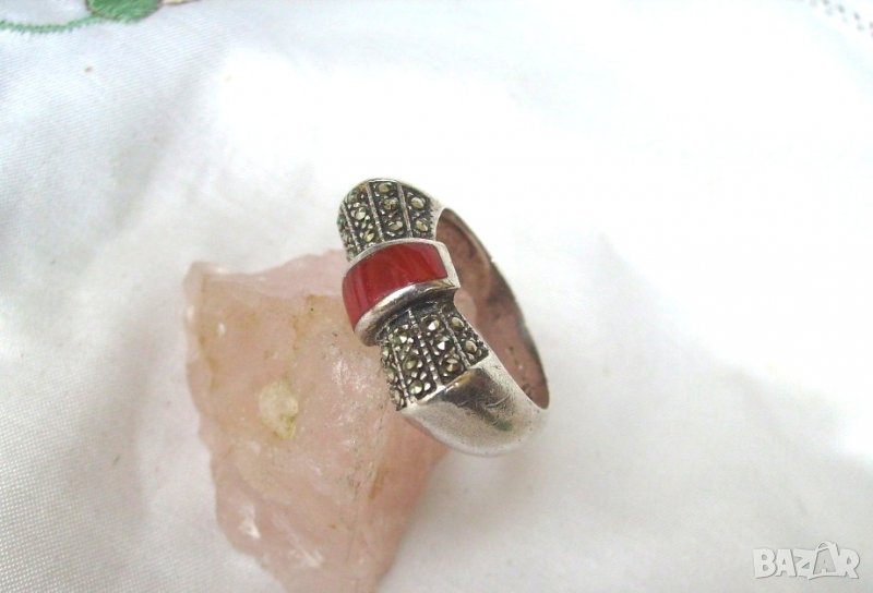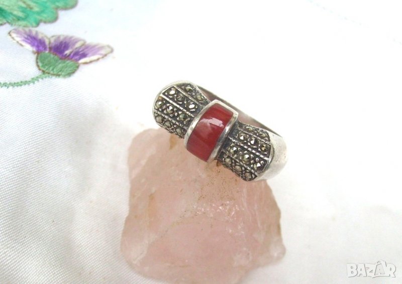 Старинен Сребърен Италиански Пръстен с Карнеол и Марказити → Обява 24243001