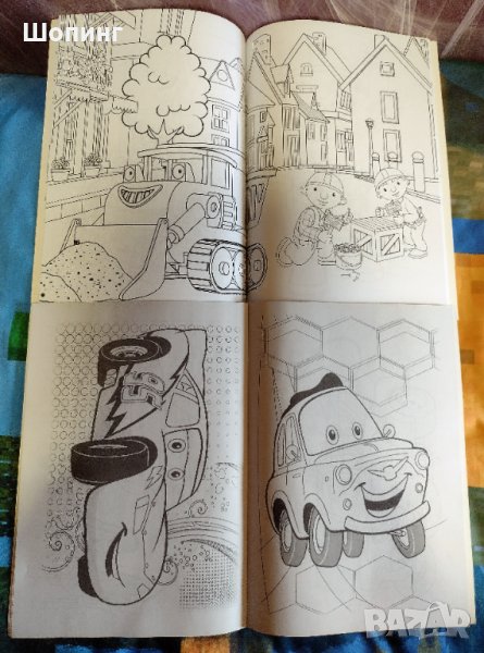 Комплект 2 съдържа две големи книги за оцветяване: Колите и Bob the Builder - Боб Билдър на Mattel.