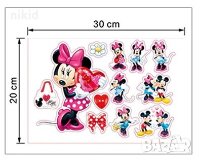 Малък лист Мини Маус сърце и Мики самозалепващ стикер лепенка за стена и мебел → Обява 24256144