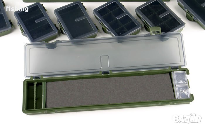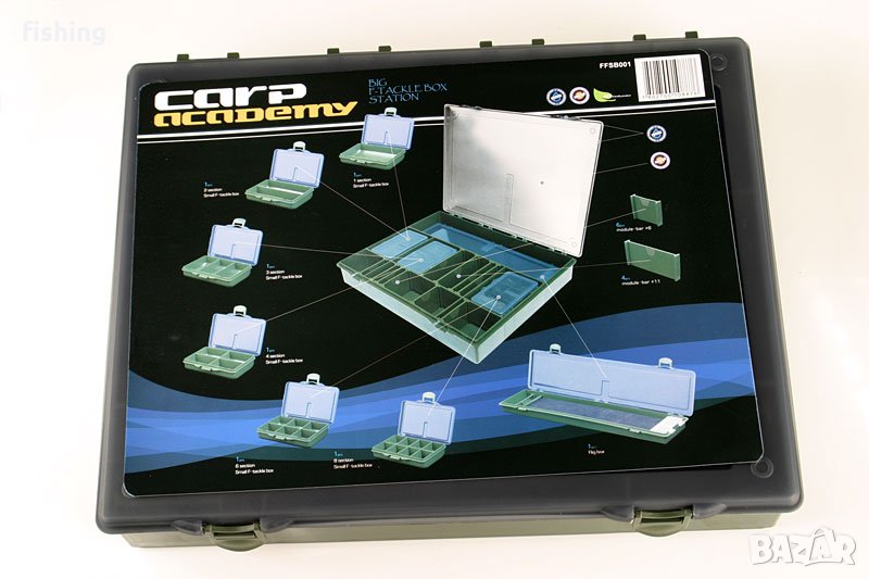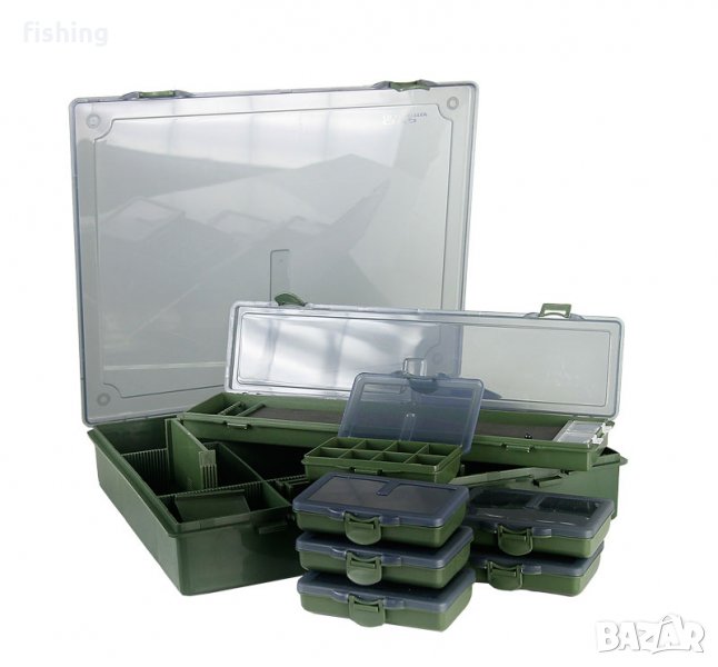 PVC кутия от здрав материал; окомплектована с шест малки кутии с различен брой отделения, кутия за поводи и десет разделителя, които дават възможност за индивидуално подреждане на голямата кутия;