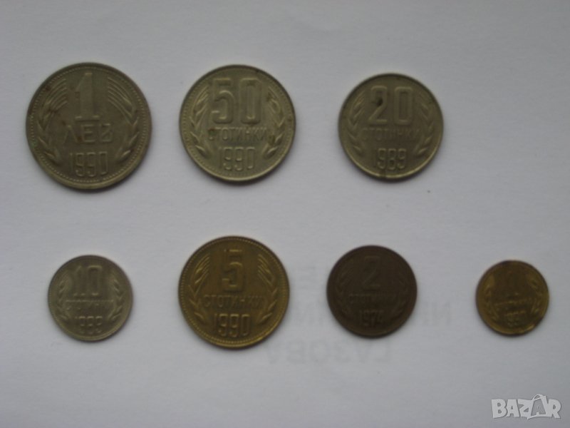 Монети от 90-те години - 1 лв, 2 лв, 5 лв, 10 лв от 1992 (малките златисти), 10 лв от 1995 (големите сребристи), 20 лв, 50 лв.