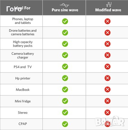 Всички предлагани от мен инвертори са с чиста (пълна) синусоида, висока ефективност и висока стартова мощност - 2 х 'номиналната'.