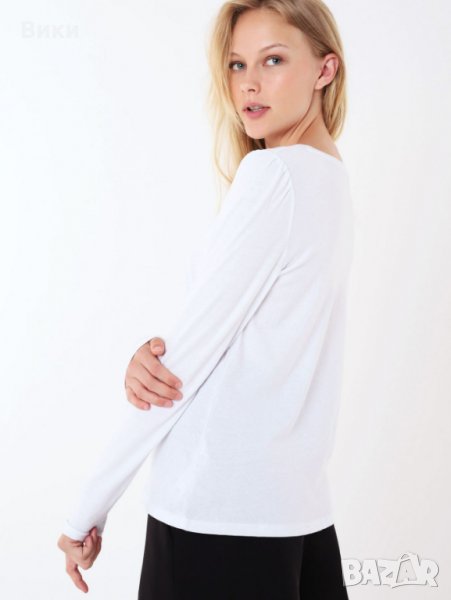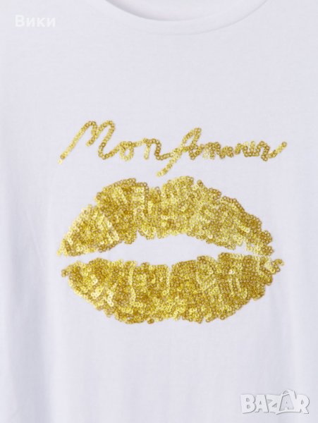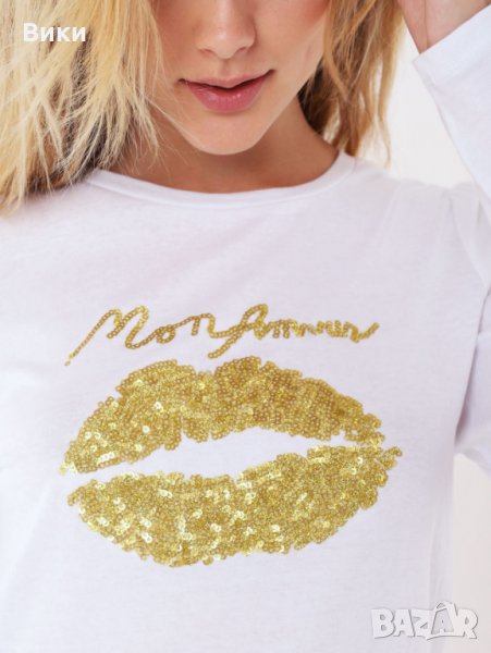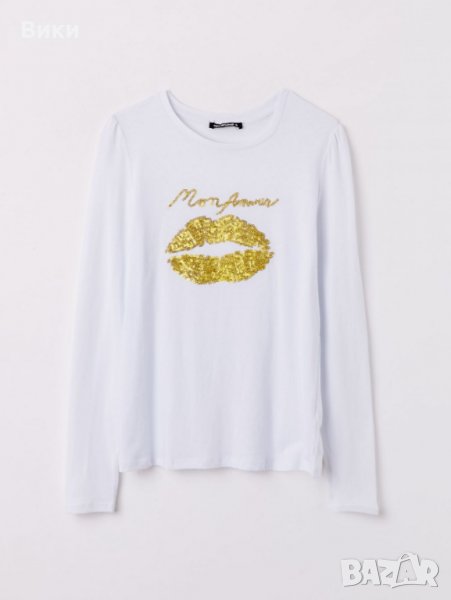 Топ в бяло и златисти пайети "Устни"