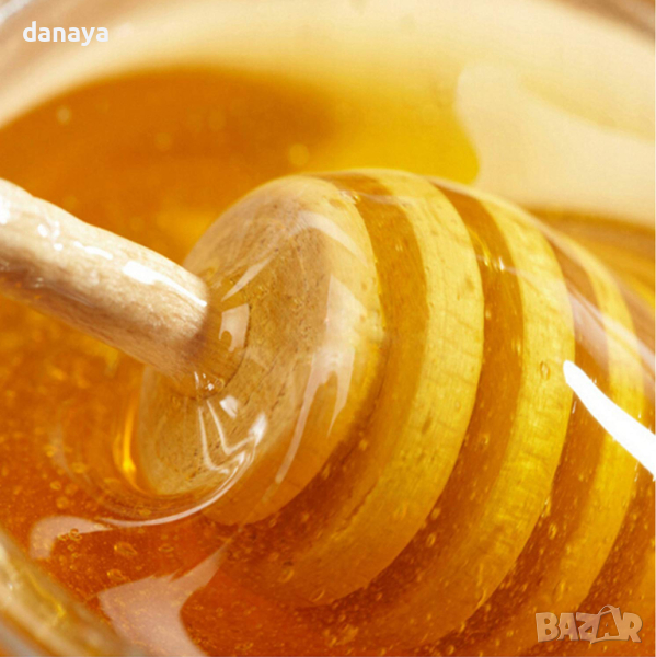 Дървена дъжичка за мед изработена от бамбук. Дървена бъркалка за мед с удължена дръжка и дупка в края ѝ за закачане на кукичка. Практична бамбукова лъжица, подходяща за сервиране на мед за чай, кафе или закуска. Подходяща както за домашна употреба, така и за ресторанти и заведения.