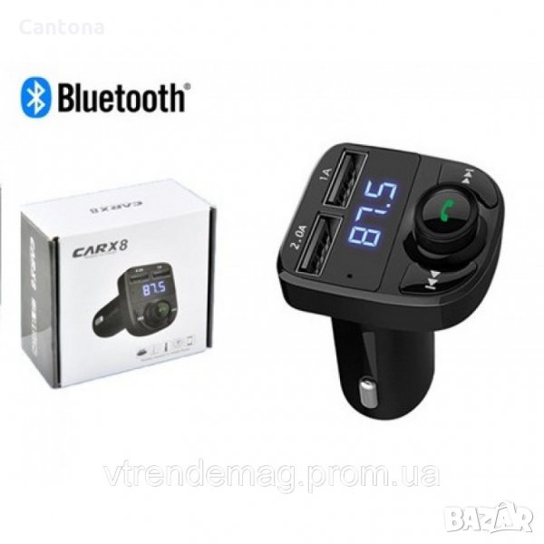 Трансмитер CAR X8 работещ с USB флашка, microSD карта и Bluetooth. Включвате Bluetooth на телефона си, сдвоявате го с трансмитера и слушате музика в колата си напълно безжично без каквито и да е кабели.