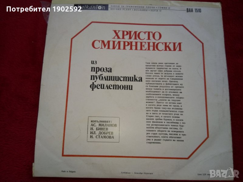Христо Смирненски. Из проза, публицистика, фейлетони ВАА 1510, снимка 1 - Грамофонни плочи - 24292582 Христо Смирненски. Из проза, публицистика, фейлетони ВАА 1510, снимка 2 - Грамофонни плочи - 24292582 1/2