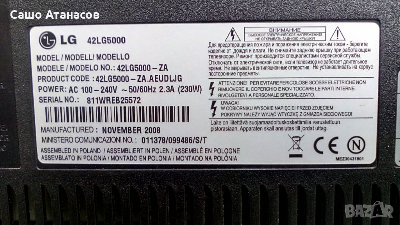 Захранване: EAY4050520 (EAX40157601 / LGP42-08H ) - 65лв.