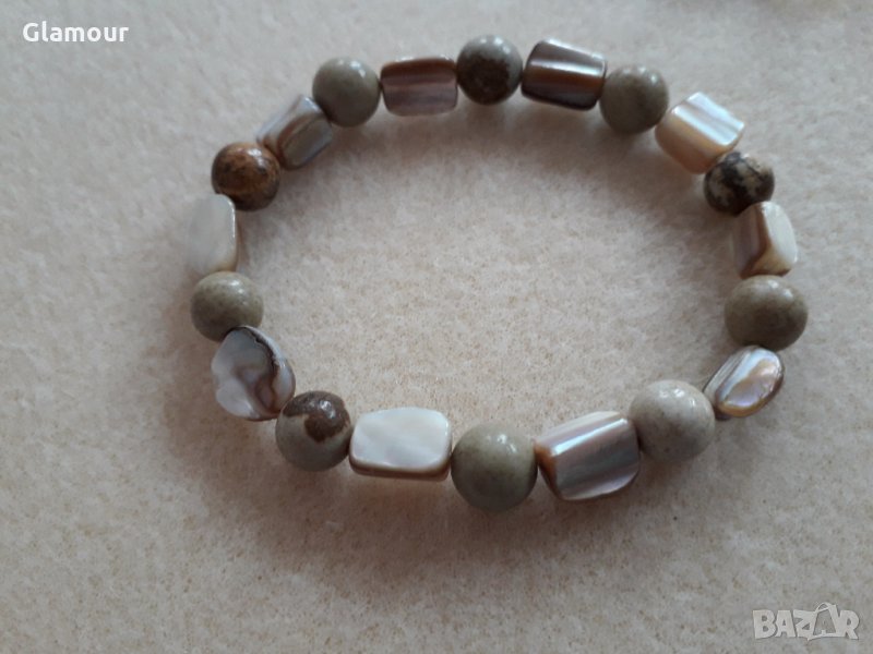 Гривна със седеф и пейзажен яспис, снимка 1 - Гривни - 24299124 Гривна със седеф и пейзажен яспис, снимка 2 - Гривни - 24299124 Гривна със седеф и пейзажен яспис, снимка 3 - Гривни - 24299124 1/3