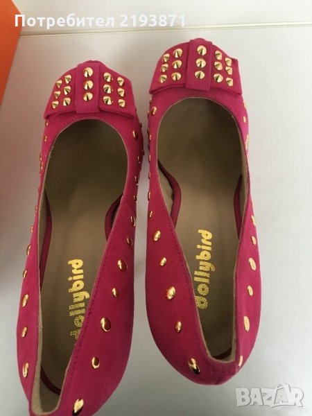 Цикламено розови обувки на платформа със златни капси от