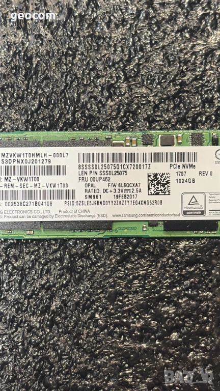 1024GB SSD Samsung SM961 M2-2280 (nVme,PCI-Ex Gen3x4)
