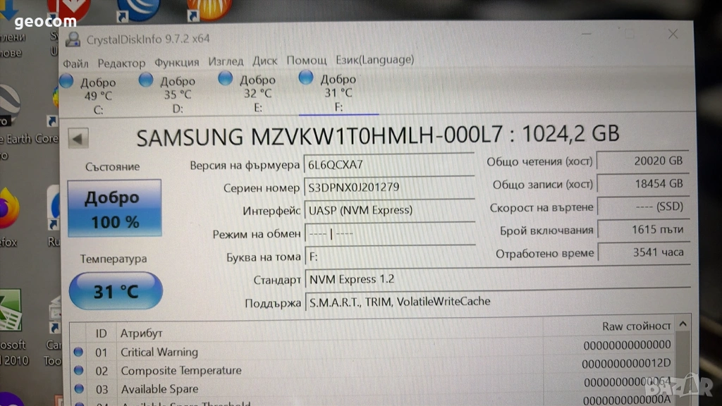 Kaпацитет: 1024GB.