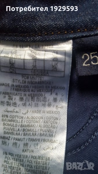 Дамски дънки марка Guess, номер 25, цвят син, нови, талия 74 см, дължина на крачола от вътрешната страна 78 см, от външната страна 98 см, имат еластичност