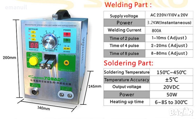 Апарат за точкова заварка SUNKKO 709AD+ 3.2KW и консумативи