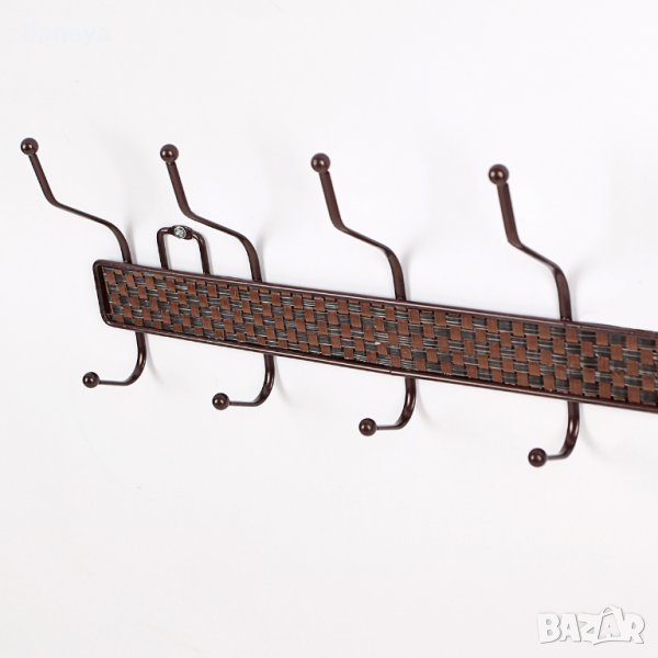 Метална стенна закачалка с 12 куки Ратанова плетеница 50см дължина