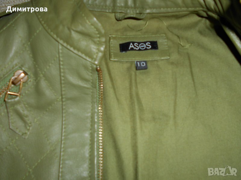 Чудесно късо яке ASOS в цвят 'каки' с памучна подплата, 100% естествена кожа!