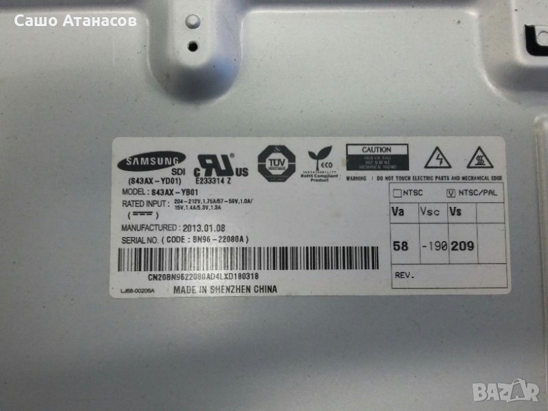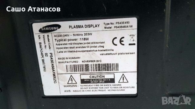SAMSUNG PS43E450 с пукнат панел ,BN44-00508B ,BN41-01785A ,LJ41-10138A ,LJ41-10137A ,LJ41-10133A
