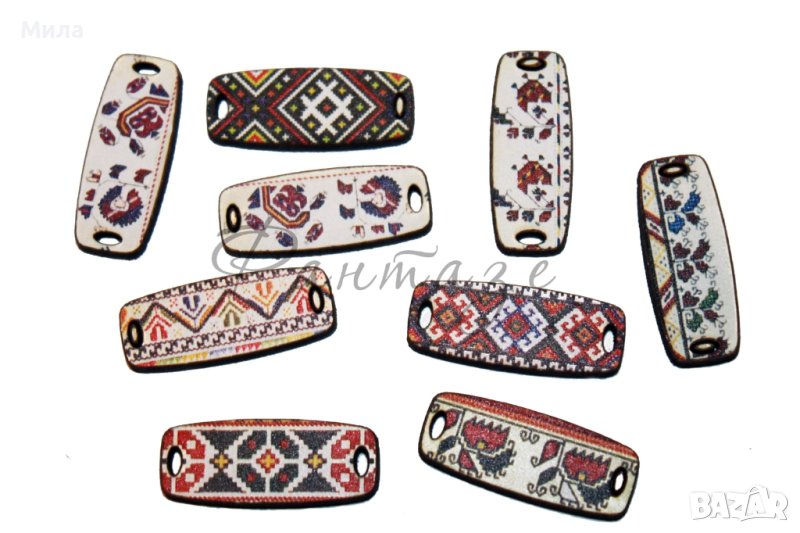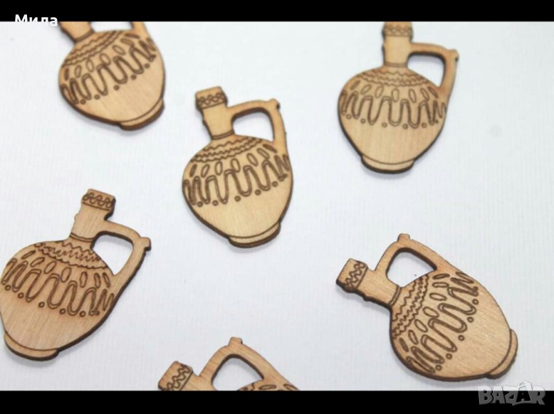 Дървени елементи: Гъдулка 2.5 х 4.4 см; Стомна 2,4 х 3,6 см, Плочка шевица 3 х 1,2 см. Всяко на цена 0.20 ст/бр.Всички налични стоки от тази категория можете да разгледате на фейсбук страницата ни "Фантазе- материали за ръчна изработка"в албума "Дървени елементи" или на нашия уебсайт artmateriali.bg