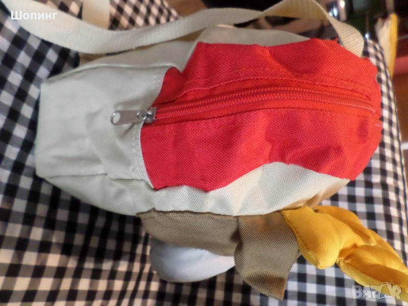 1. Раница - играчка Еленче. Гърбът се контролира. От здрава материя. Използвана е за детската градина, има следи от употреба - сниман е ръбът от вътрешната страна. Иначе е красива и здрава, детето много й се радваше, еленчо беше приятел. :) Побира необходимото за градина - височина - 28 см, дълбочина 10 см, ширина 26 см. - цена 15 лв.