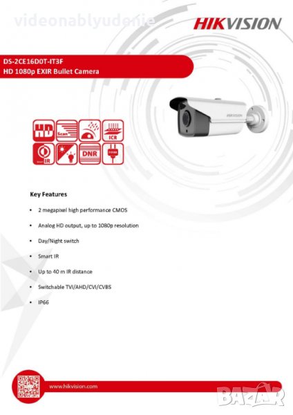 Професионална Full HD IR камера. Устройството позволява да покриете приметър от 40 метра в нощен режим. Многобройните функции на камерата подобряват качеството на картината. Подходяща, когато желаете да осигурите наблюдение около офиси, магазини, банки, детски площадки или пък да охранявате двор на къща, вила. Получавате също безплатен софтуер за отдалечено наблюдение. В камерата е вградена и най-новата SmartIR технология, която спомага за качествено изображение без значение от условията, при който заснема камерата. Повече информация за тази технология може да получите в нашия блог.