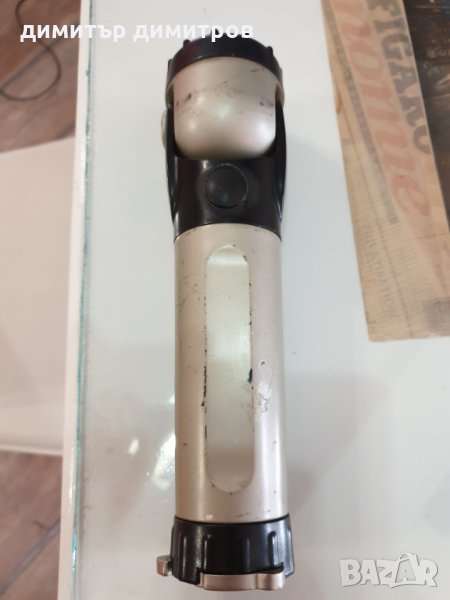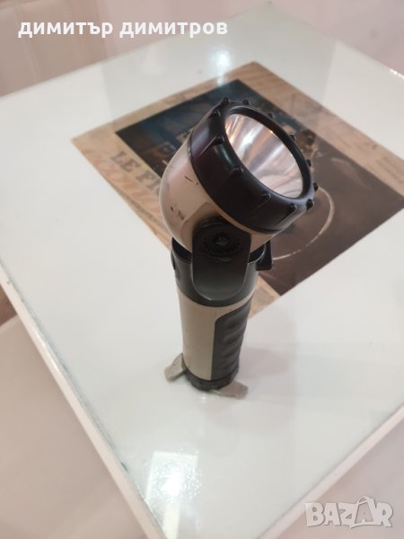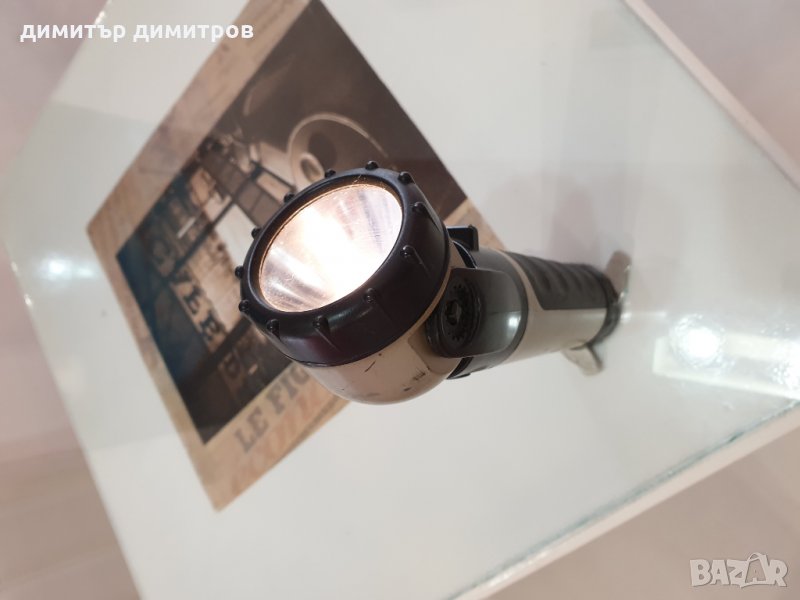 Метален фенер с чупещо рамо и метални крачета,Удобна дръжка.Влаго -ударо защита.Здрав и удобен.Използван.ПОДАРЪК БАТЕРИИ.Пращам по Еконт с преглед и тест