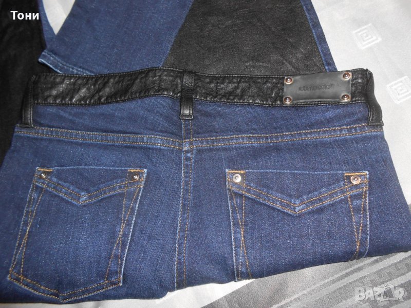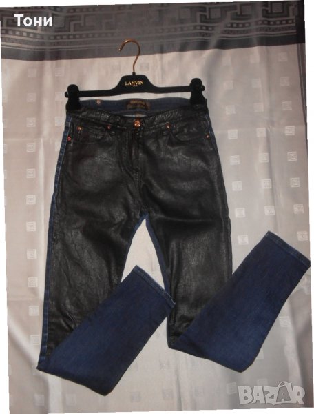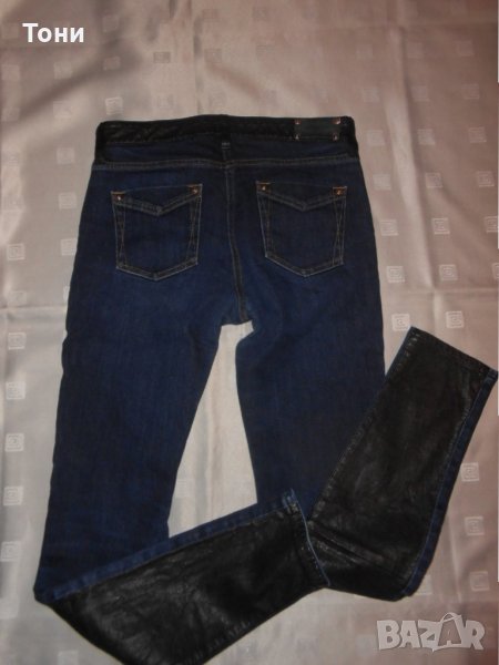 Дънките са оригинални .Слим модел по -тялото .Цвят индиго с кожа отпред .Носени няколко пъти .Без забележки .