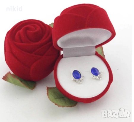 червена роза от кадифе плюш кутийка за пръстен бижу кутия → Обява 24389795