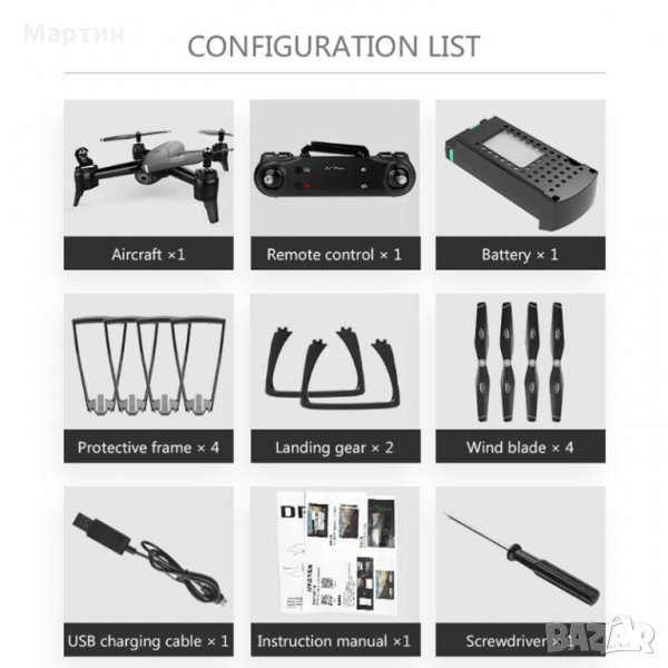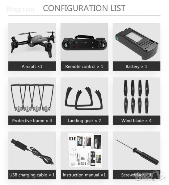 - Корпусът на квадрокоптера е изработен от високоякостна и устойчива инженерна пластмаса, с лека и дълготрайна устойчивост.