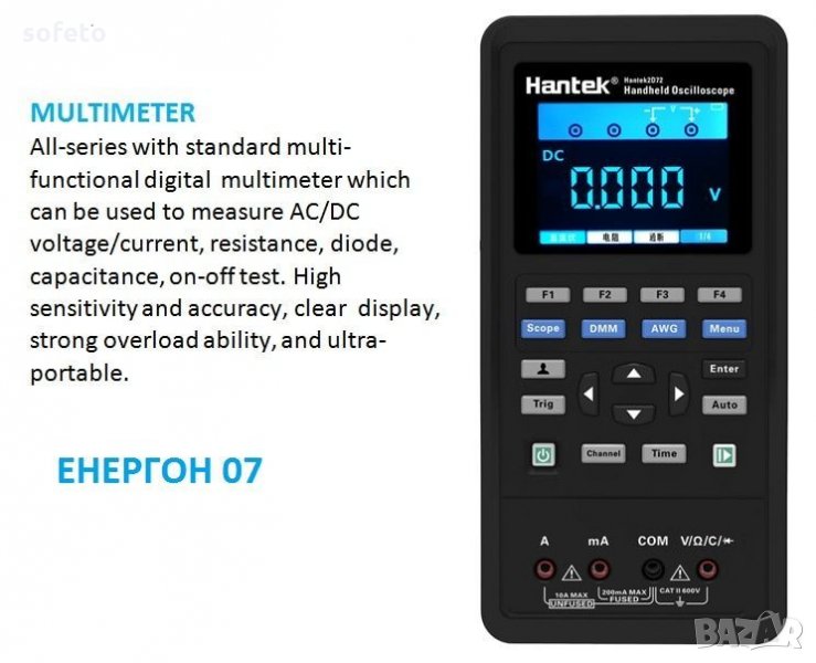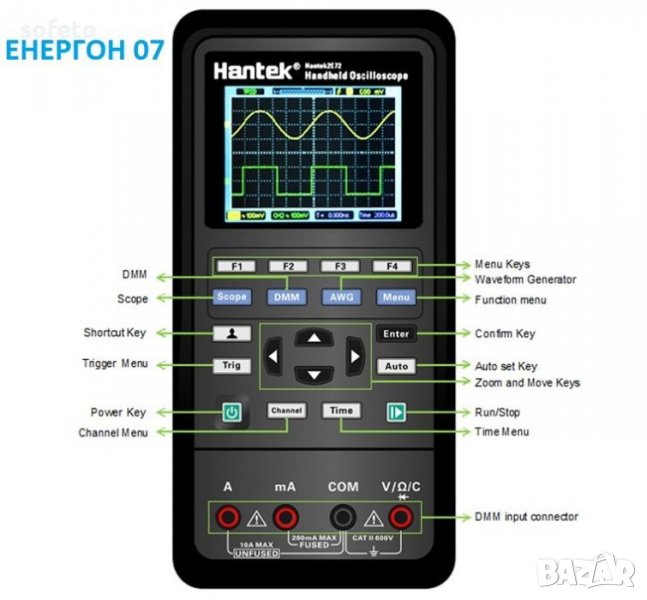 ВИСОК КЛАС!!! ОРИГИНАЛЕН HANTEK!!! Професионален портативен двуканален осцилоскоп - Модел 2D72 - С ГЕНЕРАТОР НА ИМПУЛСИ ( AWG)