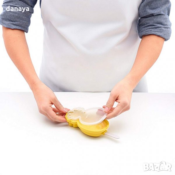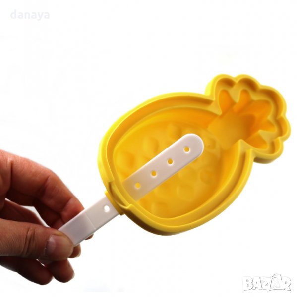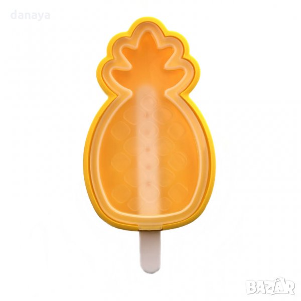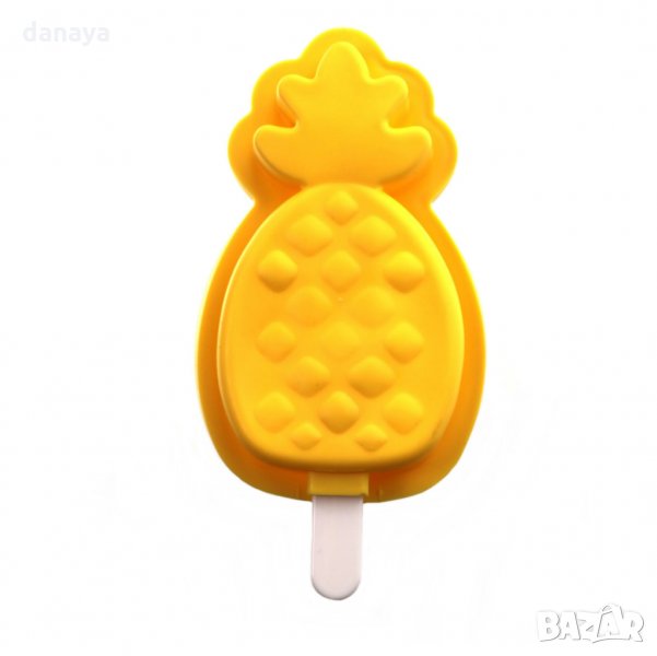 Единична силиконова форма за сладолед на клечка ананас. Формата е идеална за приготвяне на вкусен и здравословен домашен сладолед Ескимо. Децата обожават ледени близалки! Чудесна разхлада за летните горещи дни, а и не само. Лесна за употреба - отворете капака, напълнете формата с любимия разбит компот, плодов сок, фреш или млечен шейк, оставете за 2-3 часа във фризера и вече имате вкусен домашен сладолед!
