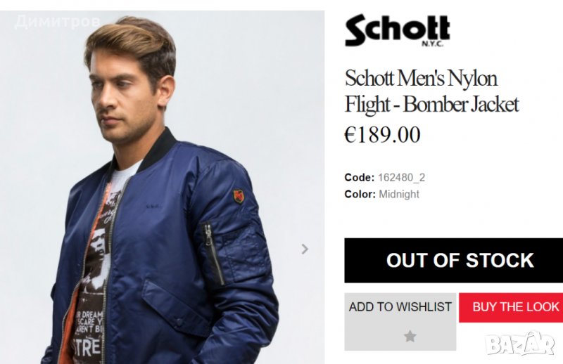 2. Син бомбър SCHOTT, тип "колежанско яке" - нов, с етикет. Подплатен, но не много. Размер ХL.