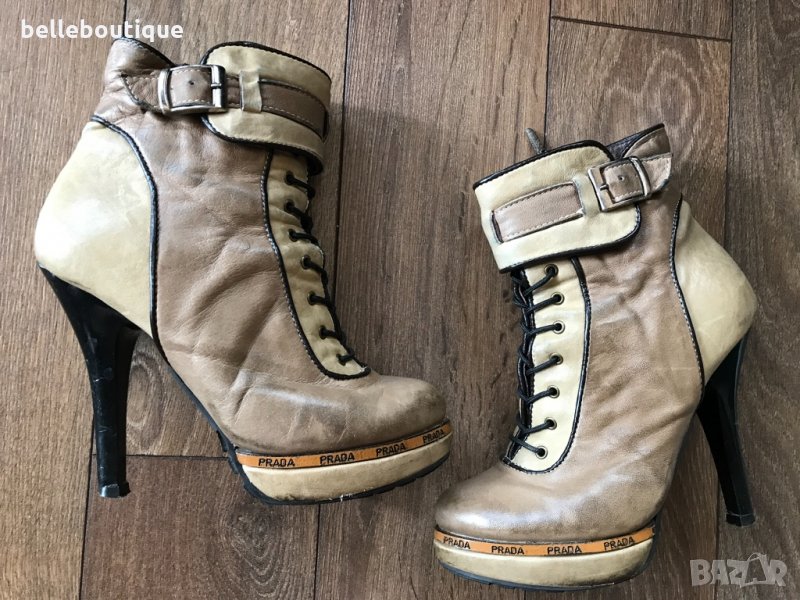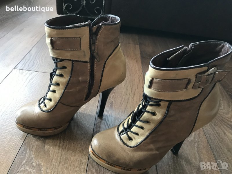 Страхотни зимни боти с висок ток на марката Прада. Състояние - Обувани са няколко пъти, изключително запазени!