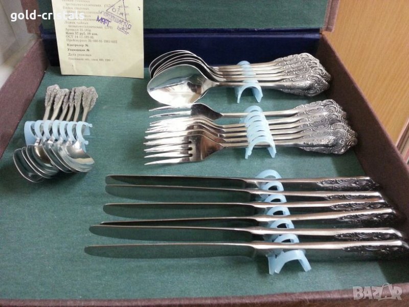 Ретро сервиз руски прибори за хранене в кутия ножове вилици лъжици лъжички маркирани неръждаеми масивни 89г на практика вечни подходящи за подарък съветски ссср стари старинни антикварни арт декор винтидж колекция комплект сет лот стари антикварни предмети обзавеждане за дома и семейството