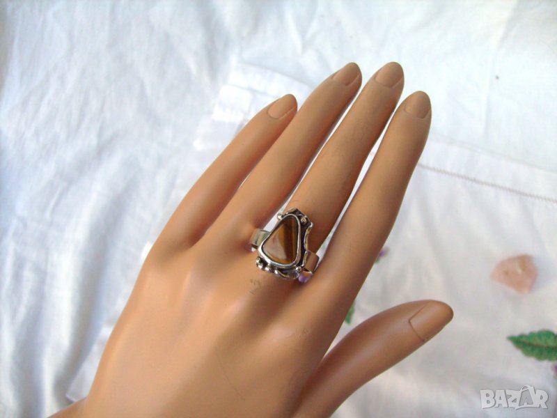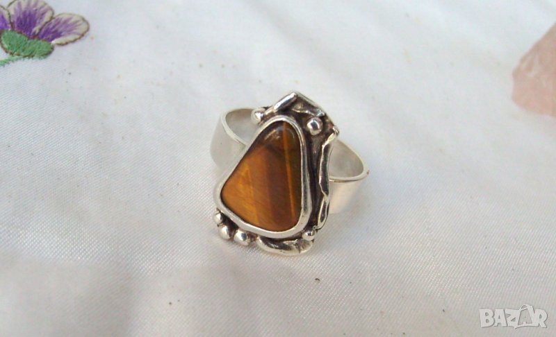 Старинен Сребърен Пръстен с Тигрово Око → Обява 24399141
