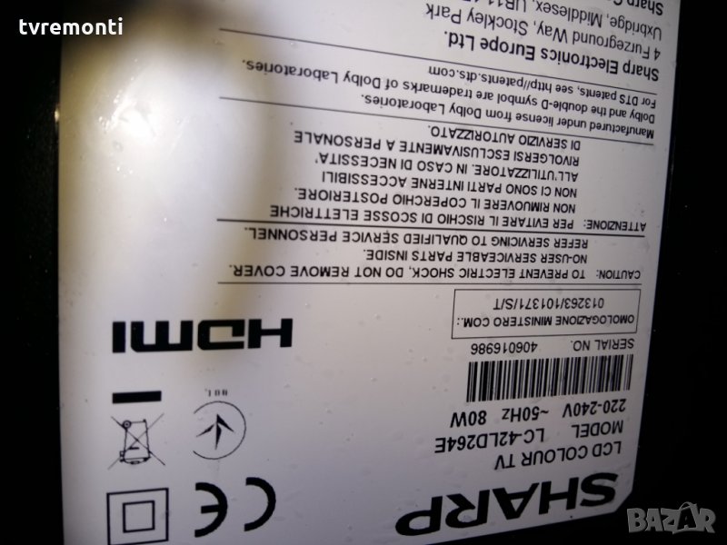 Платка POWER SUPPLY 715G6635-P01-000-003S SHARP LC-42LD264E PANEL TPT420H2-HVN06 IC STRA6069H