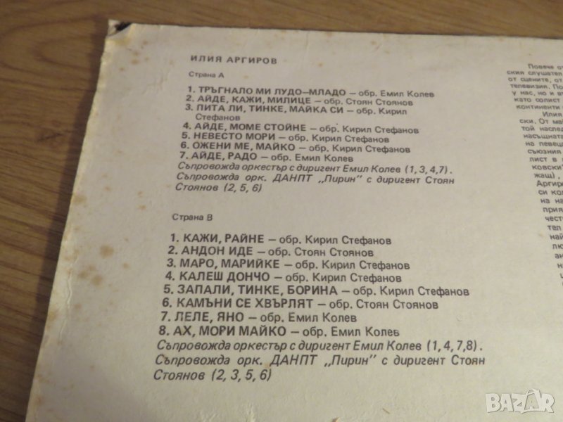 Рядка Грамофонна плоча Любен Аргиров - изд. 80те години - народна музика .