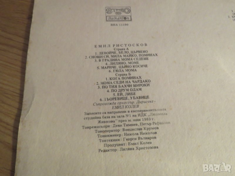 грамофонна плоча народни Емил Ристосков - изд. 80те години - народна музика .