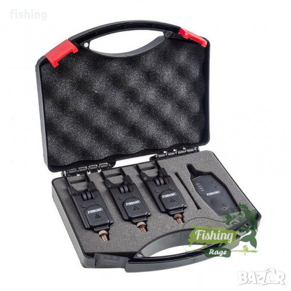 Комплект от 3/4 аларми и централа. Обхватът на централата е 100 - 200 метра в зависимост от условията на заобикалящата среда. Работна честота - 433.92 MHz. Централата работи с 3 х AAA батерии, които не са включени в комплекта. Сигналът на алармите не се препокрива с този на други риболовци. Алармите са водоустойчиви с подвижни ограничители. Можете да настройвате силата на звука и тона. Притежават жак за индикатор и нощна лампичка. Настройките се запаметяват и след изключване. Работят с 1 х 12V 23A батерия, която не е включена. Размер: 35 х 105 х 30 мм.