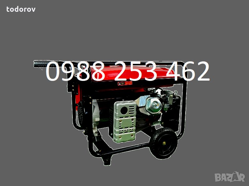 Предлагаме Ви, новите 9.5 KW бензинови четиритактови генератори BULLMAX, за монофазен ток, с вградена фабрична автоматика в генератора и управляващо напълно автоматично старт-стоп табло, които служат за автоматичното стартиране/спиране на генератора при отпадане/ възстановяване на основното ел. захранване. Този модел генератор има вградена букса с която при закупуване на контакторна кутия генератора става напълно автоматичен. Гарантирано безотказно и без никаква човешка намеса. При прекъсване на тока в автоматичното старт-стоп табло, управляващо генератора има монтиран автоматичен таймер, който прави три последователни опита за стартиране на генератора. Автоматичният таймер, след възстановяване на електричеството гаси автоматично генератора след 30 секунди. В управляващото табло има вградена изцяло автоматична двупосочна контакторна система, не позволяваща на генератора при отпадане на нормалното електричество и при включване на режим генератор да се върне ток към електропреносната мрежа. И обратно - при възстановяване на нормалното електричество спира автоматично подаването на ток от генератора към електрическото табло. ВГРАДЕНО АВТОМАТИЧНО ЗАРЯДНО ЗА АКУМУЛАТОРА. При нашите генератори автоматичното старт-стоп табло следи за нивото на заряд на акумулатора и при нужда го дозарежда до нужния заряд, за да може всеки път генератора да стартира безупречно. Когато генератора не е превключен на режим автоматика, паленето на генератора е с ключ, който е на управляващото табло. Генераторите са с медни ротори и статори и са оборудвани с автоматичен смукач. Бензинов Двигател VТR 800 с въздушно охлаждане, 18 конски сили. Работна честота: 50 Hz. Вграден AVR /Automatic Voltage Regullator/. Автоматичен предпазител против претоварване на генератора. Магнетен стартер и автостартер с ключ и акумулатор. Транспортна рамка с колела и дръжки за по-лесно предвижване на генератора. Генератора има вграден дигитален дисплей показващ изходящият моментен волтаж, херцовете и отработените моточасове. 3 броя изходи за 230 V и един изход за 12 V. Нивото на шума е 69-72 dB. Разход: 450 грама бензин на киловат час при пълно натоварване. Размерите му са: дължина 68 см., ширина 51 см. и височина 55 см. Тегло бруто с автоматиката 110 кг. Гаранционен и следгаранционен сервиз. *** В специализирания ни сервиз приемаме за ремонт всякакви марки и модели инверторни електрожени, СО2 телоподаващи устройства, генератори за ток, плазми за рязане, зарядна техника, електроинструменти, моторни коси, водни помпи за поливане и отводняване и други.
