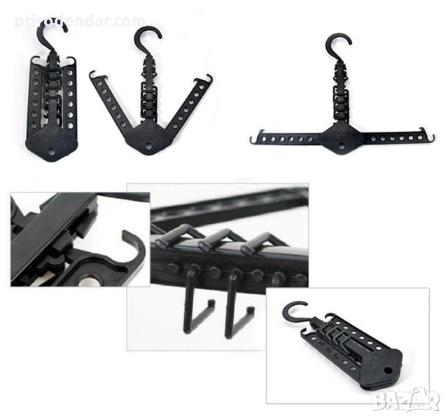 В разгънато положение на него могат да се закачат 12 закачалки. Разполага с 8 кукички за вратовръзки.