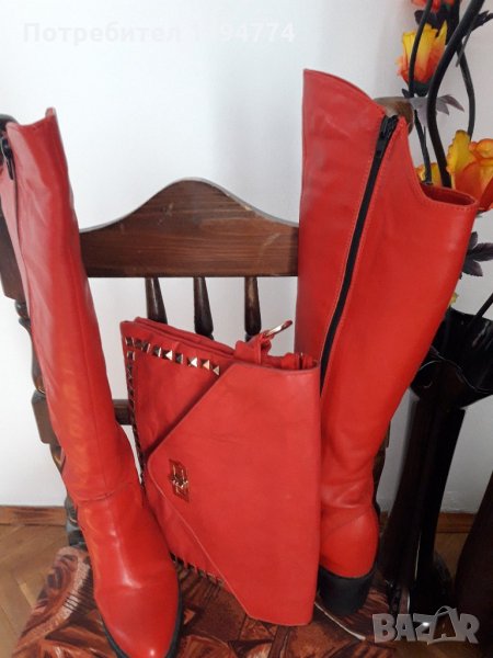 Ботуши до коляно. Височина на платформа 7 см, предна платформа 2 см., стелка 23 см. Топла неопренова подплата.Стоят по крака,в предната част са леко удължени. В отлично състояние, обувани 3-4 пъти. Ако търсите удобство и комфорт през зимата, модела много ще Ви хареса. Чантата има 3 прегради и дълга дръжка. Базовата стойност на ботушите беше 220 лв. Предлагат се и по отделно, чанта - 20 лв, ботуши - 70лв.