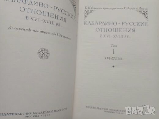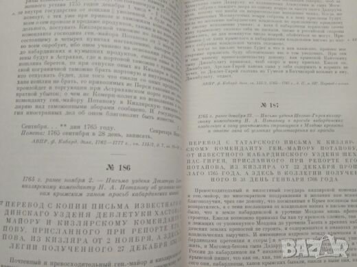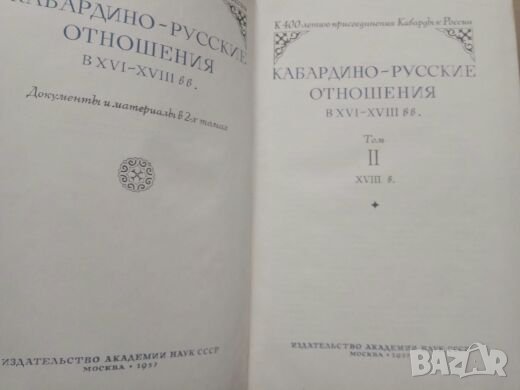 Кабардино-русские отношения в XVI-XVIII веках. Документы и материалы в 2-х томах. Том 1. Том 2. К 400-летию присоединения Кабарды к России. Москва изд. АН СССР 1957г. 476с+424c.