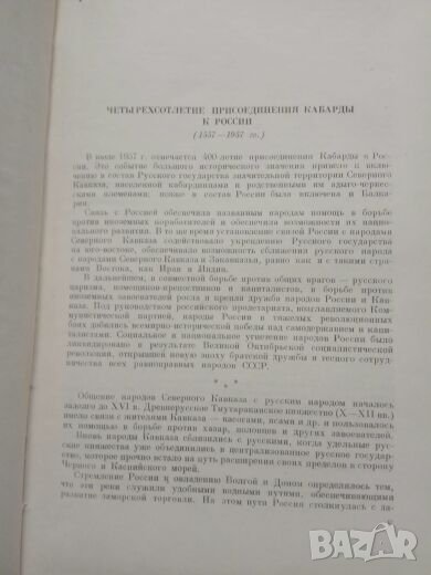 Тир. 3 200 экз. В июле 1957 г. отмечалось 400-летие присоединения Кабарды к России. Это событие большого исторического значения привело к включению в состав Русского государства значительной территории Северного Кавказа, населенной кабардинцами и родственными им адыго-черкесскими племенами; позже в состав России была включена и Балкария. Установление связей России с народами Северного Кавказа содействовало укреплению Русского государства на юго-востоке. Общение народов Северного Кавказа с русским народом началось задолго до XVI в. Древнерусское Тмутараканское княжество (Х-ХII вв.) имело связи с жителями Кавказа: касогами, ясами и др. – и пользовалось их помощью в борьбе против хазар, половцев и других завоевателей. Вновь народы Кавказа сблизились с русскими, когда удельные русские княжества уже объединились в централизованное русское государство, которое прочно встало на путь расширения своих пределов в сторону Черного и Каспийского морей. Стремление России к овладению Волгой и Доном определялось тем, что эти реки служили удобными водными путями, обеспечивающими развитие заморской торговли. На этом пути Россия столкнулась с завоевательной политикой Турецкого государства, успевшего к XVI в. утвердить свое господство на Черном море, создать прочную опорную базу в Крыму и в устье Дона (Азов) и через них установить контакт с Казанским и Астраханским ханствами и Ногайской ордой, кочевавшей в волжских степях и в степях Предкавказья