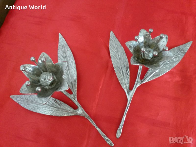 Уникални Много Красиви Стари Масивни Посребрени Цветя.Състоянието е видно.