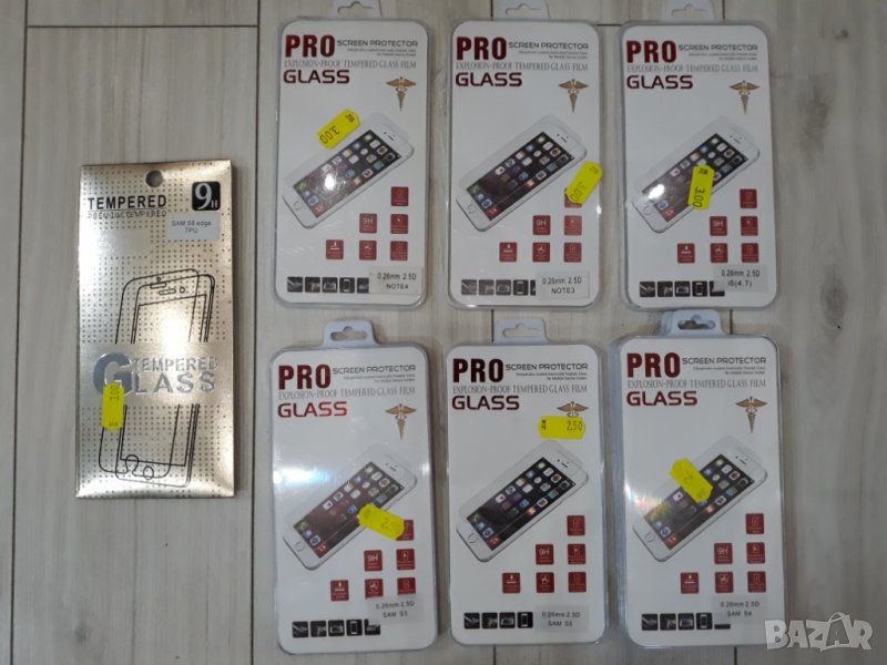 Стъклените протектори са на цена 2 лв., а останалите протектори са по 1 лв