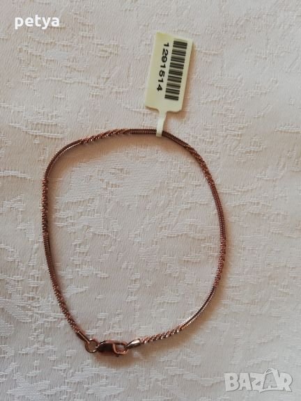 Сребърна гривна със 14 к розово златно покритие. Дължина 19см.