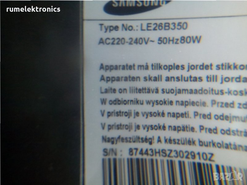 SAMSUNG LE26B350F1W на части, снимка 1 - Друга електроника - 24436738 SAMSUNG LE26B350F1W на части, снимка 2 - Друга електроника - 24436738 SAMSUNG LE26B350F1W на части, снимка 3 - Друга електроника - 24436738 SAMSUNG LE26B350F1W на части, снимка 4 - Друга електроника - 24436738 SAMSUNG LE26B350F1W на части, снимка 5 - Друга електроника - 24436738 SAMSUNG LE26B350F1W на части, снимка 6 - Друга електроника - 24436738 SAMSUNG LE26B350F1W на части, снимка 7 - Друга електроника - 24436738 1/7